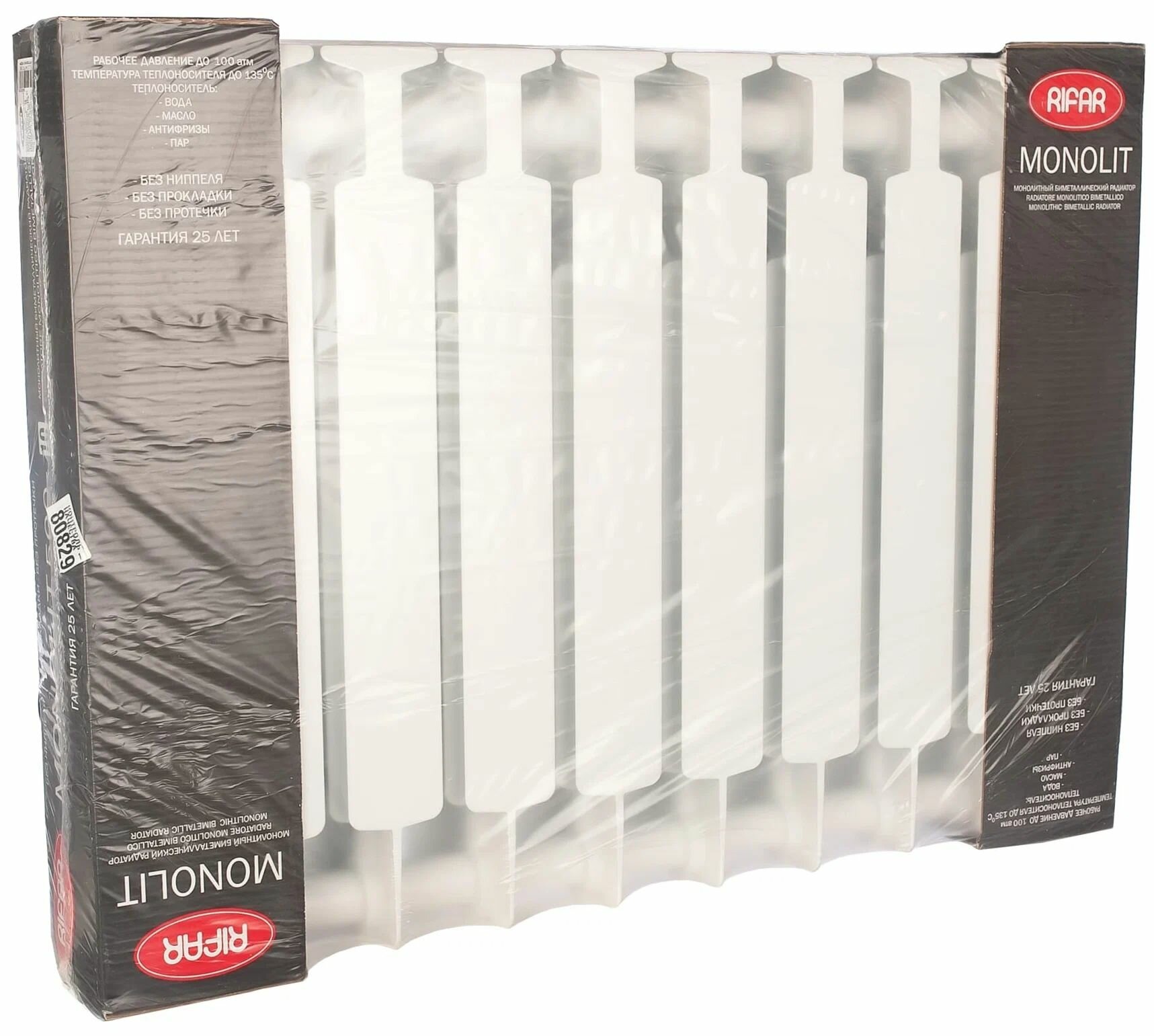 Радиатор биметаллический RIFAR MONOLIT 500 - 8 секций (подключение боковое 3/4", цвет белый)