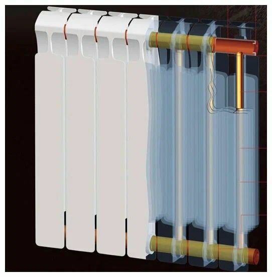 Секционный биметаллический радиатор Rifar Monolit 500 06 секций с боковым подключением