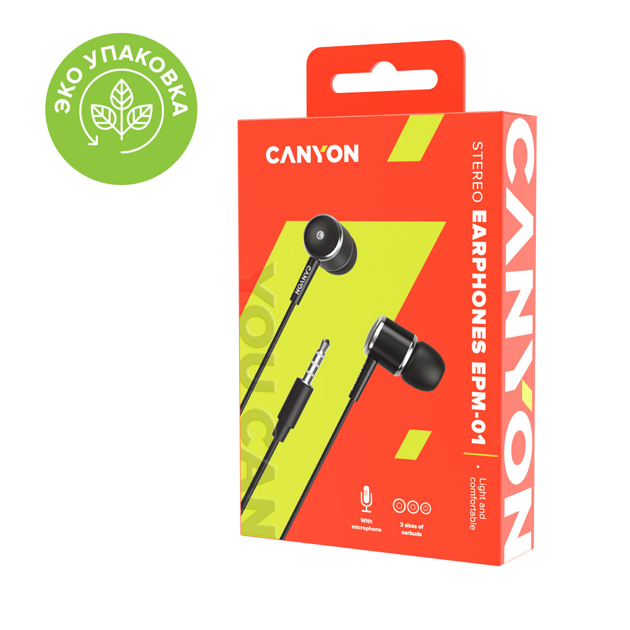 Наушники Canyon EPM-01, проводные, микрофон, черные (CNE-CEPM01B)