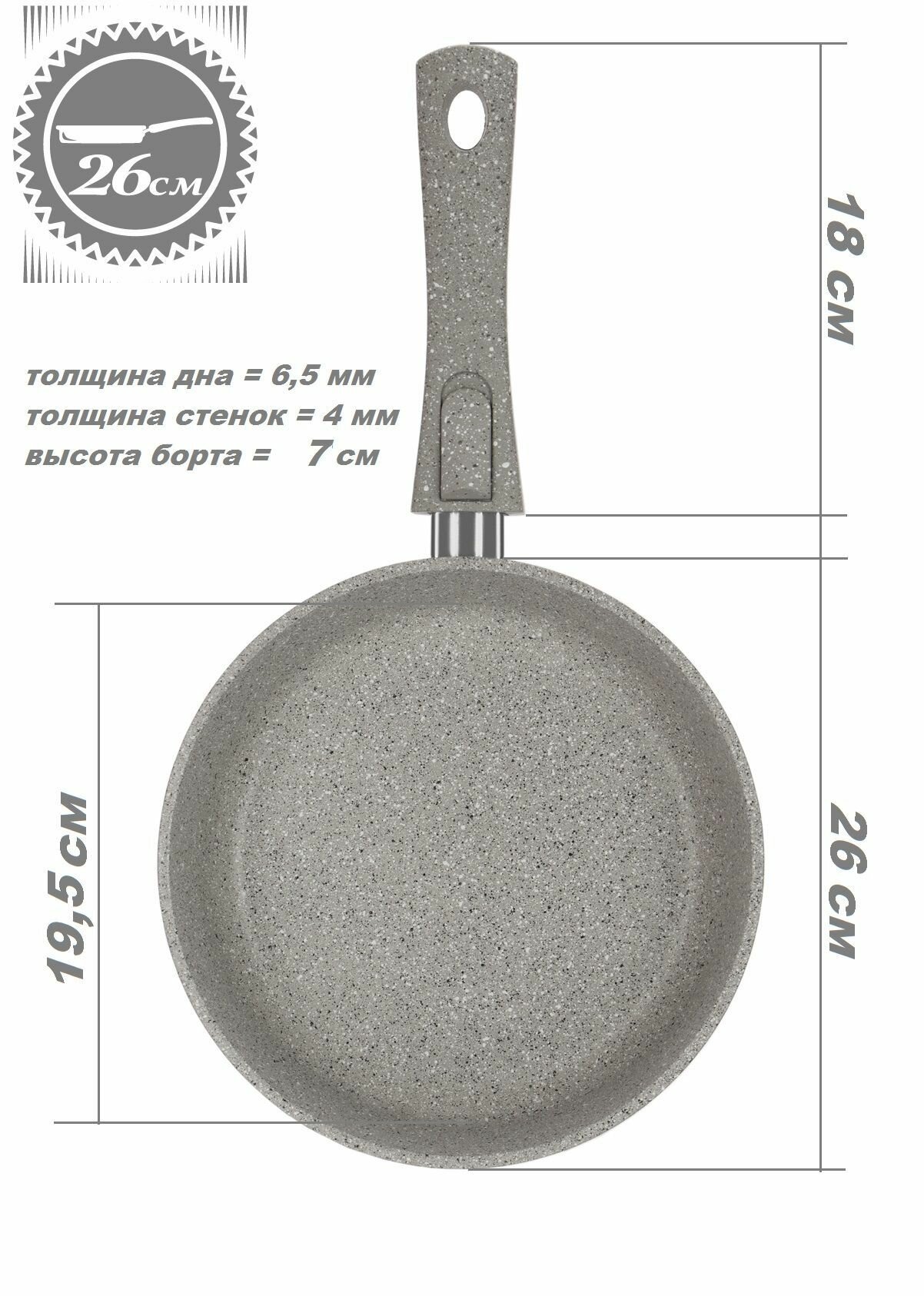 Сковорода Маруся Мрамор 9026 26 см со съемной ручкой (литая антипригарная) серая