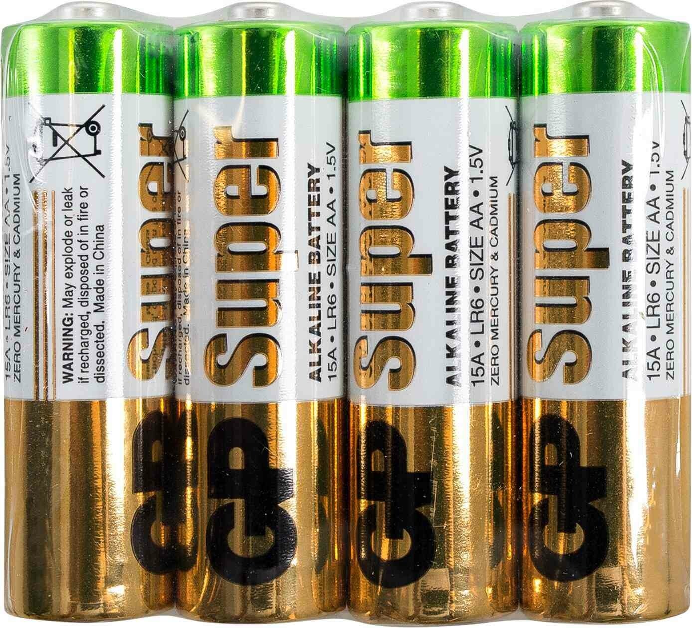 GP Батарейки комплект 4 шт., GP Super, AA (LR06, 15А), алкалиновые, пальчиковые, в пленке, 15ARS-2SB4 аккумуляторы и батарейки в Курчатов