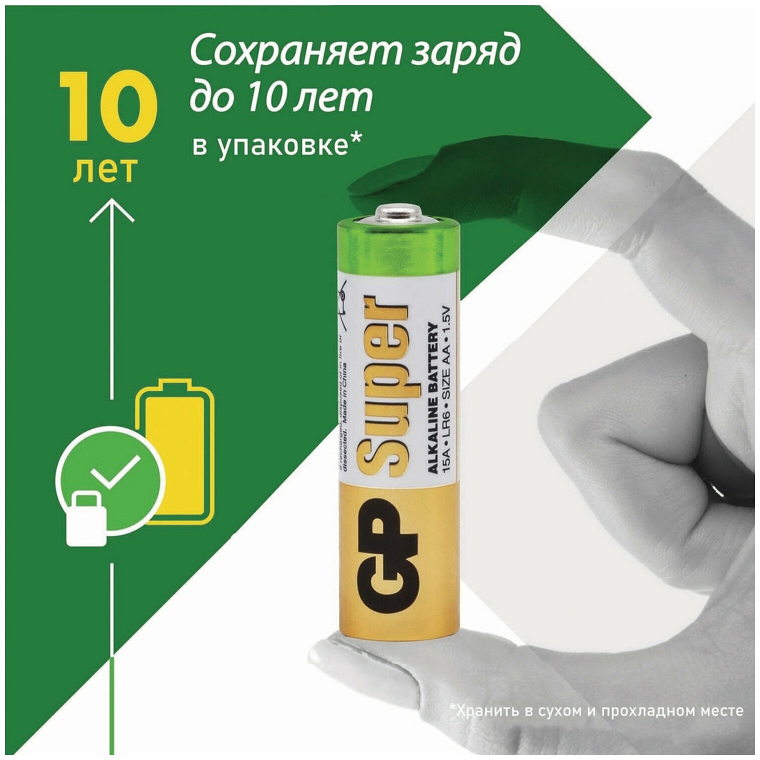 Батарейка LR6 AA GP SUPER ALKALAINE (до 2033 года) (упаковка 4 штуки)