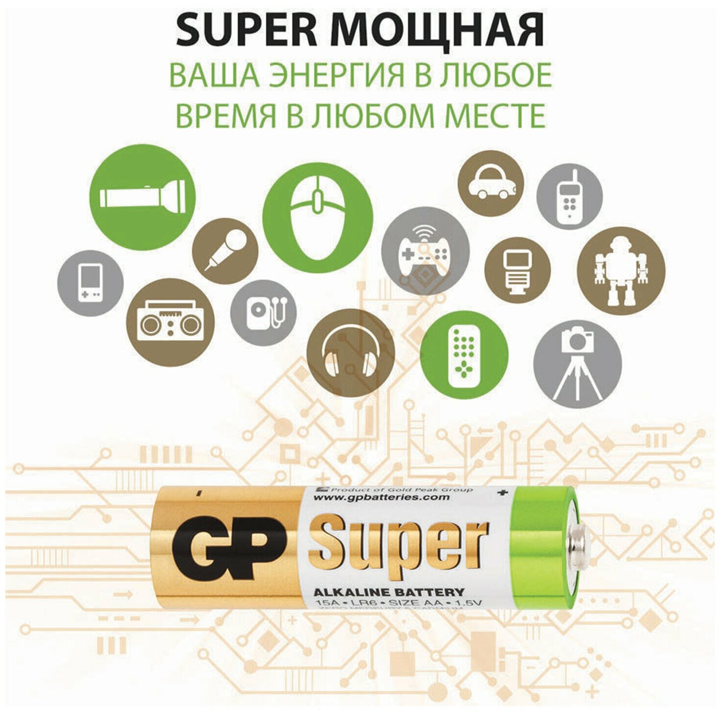 Батарейки GP Super Alkaline 15A LR6 AA (10шт) GP 15A-B10 GP 15A-B10