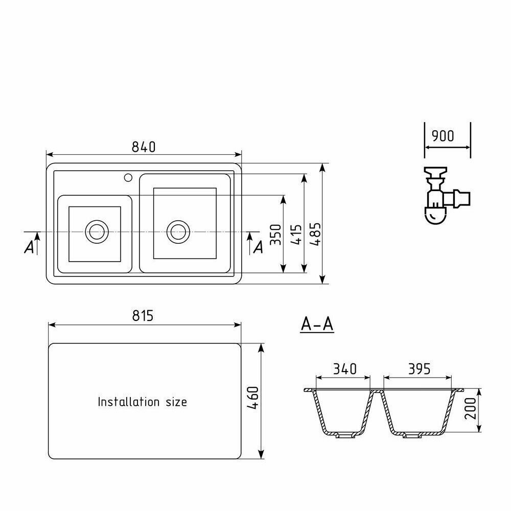 Ulgran Мойка кухонная Ulgran из искусственного мрамора прямоугольная U-200, цвет: ультра-черный, база: 81.5х46 см, арт. U-200-344 кухонная мойка в Курчатов
