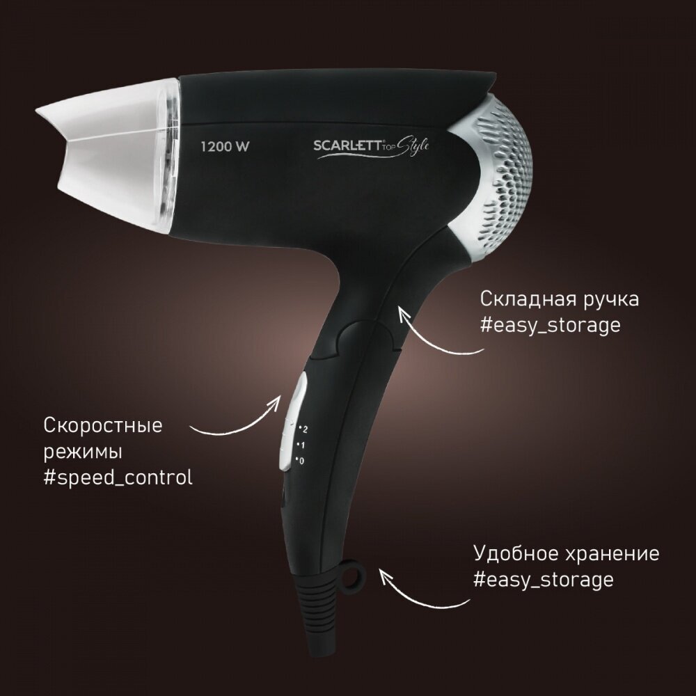 Фен Scarlett SC-HD70IT02, 1200Вт, черный