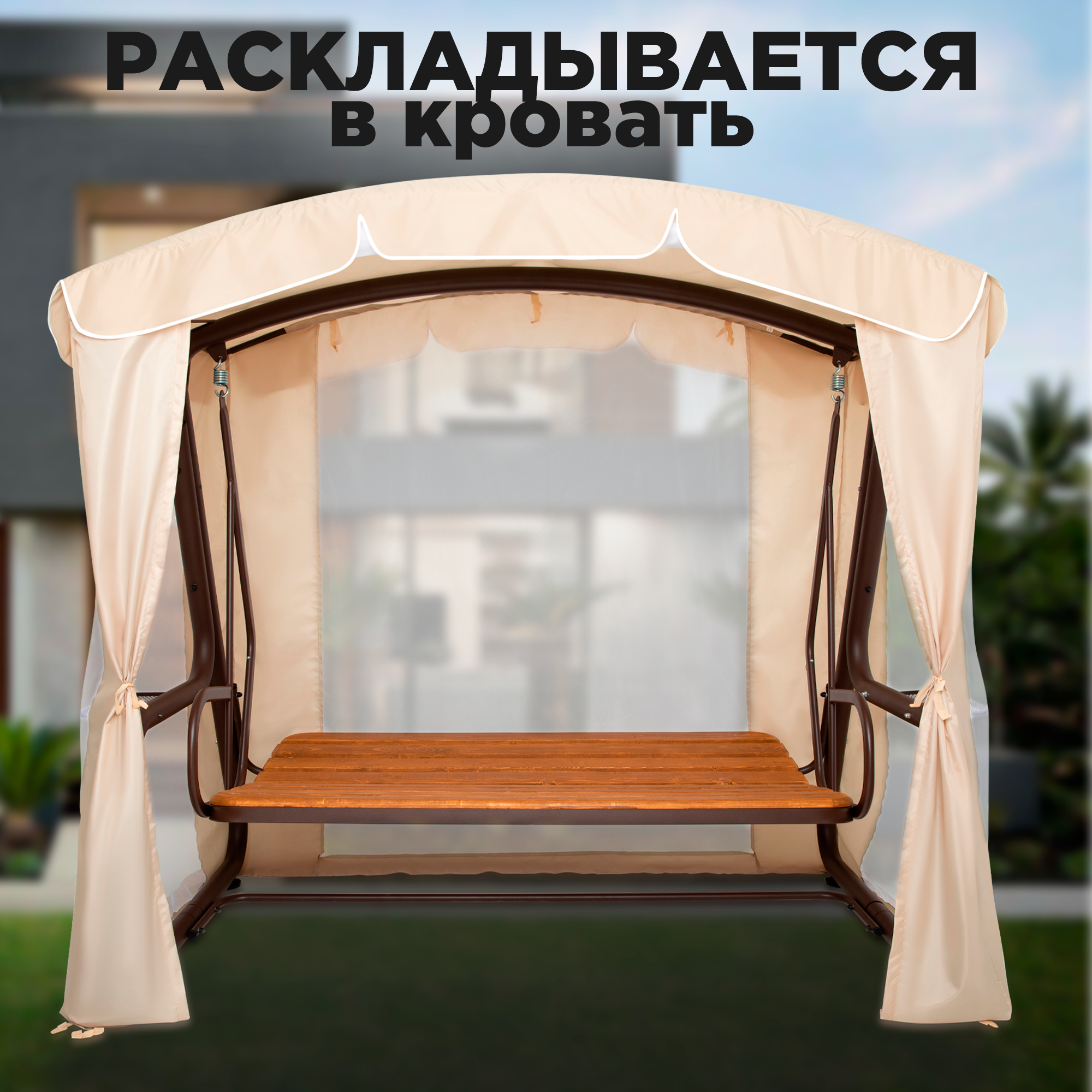 Sport Elite Садовые качели элит люкс для дачи уличные 3-местные подвесные с тентом и москитной сеткой бежевый садовая качель в Курчатов