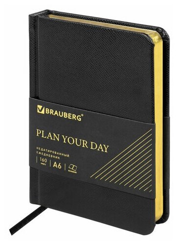 Ежедневник BRAUBERG недатированный, А6, 100х150 мм, "Iguana", под зернистую кожу, 160 л., черный, крем. блок, зол. срез, 125104