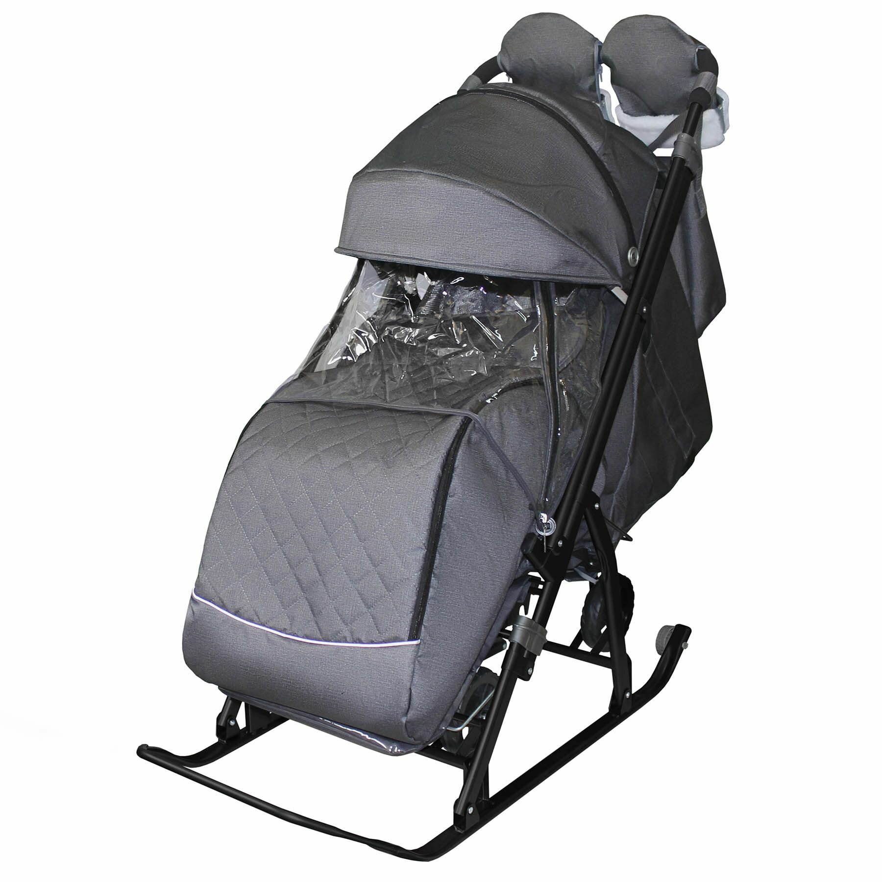 Hamax Санки-коляска SNOW GALAXY Kids-3-2-Т Серебро крупный ромб на больших колесах+сумка+варежки санки в Курчатов