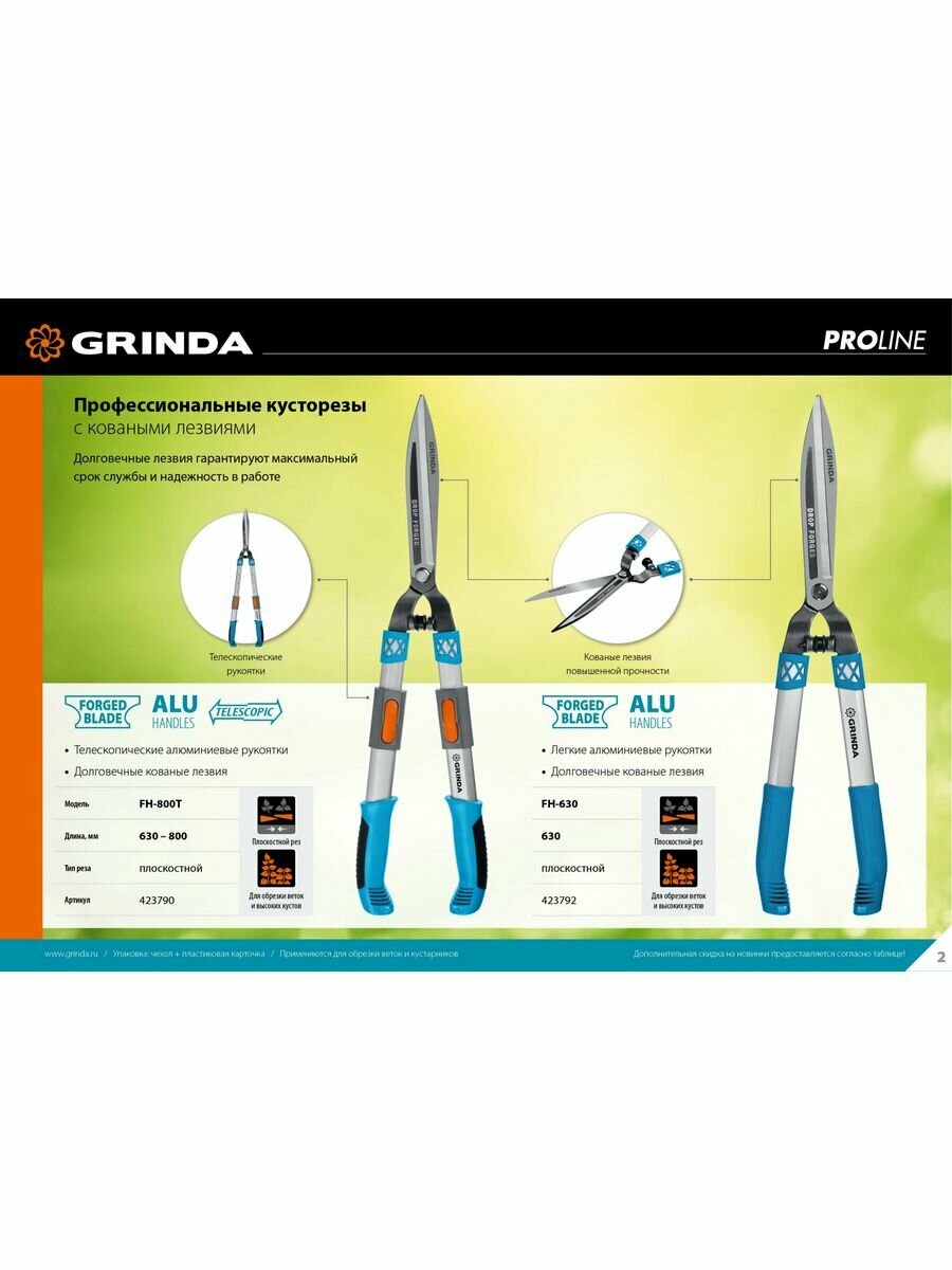 GRINDA FH-800T с коваными лезвиями, телескопический, 630-800мм, с алюминиевыми рукоятками, Кусторез, PROLine (423790)