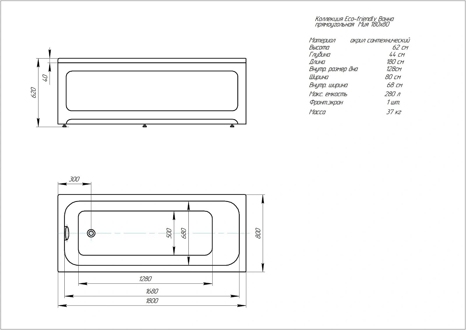 Акриловая ванна Акватек Eco-friendly Мия прямоугольная 175х70 см MIY175-0000001