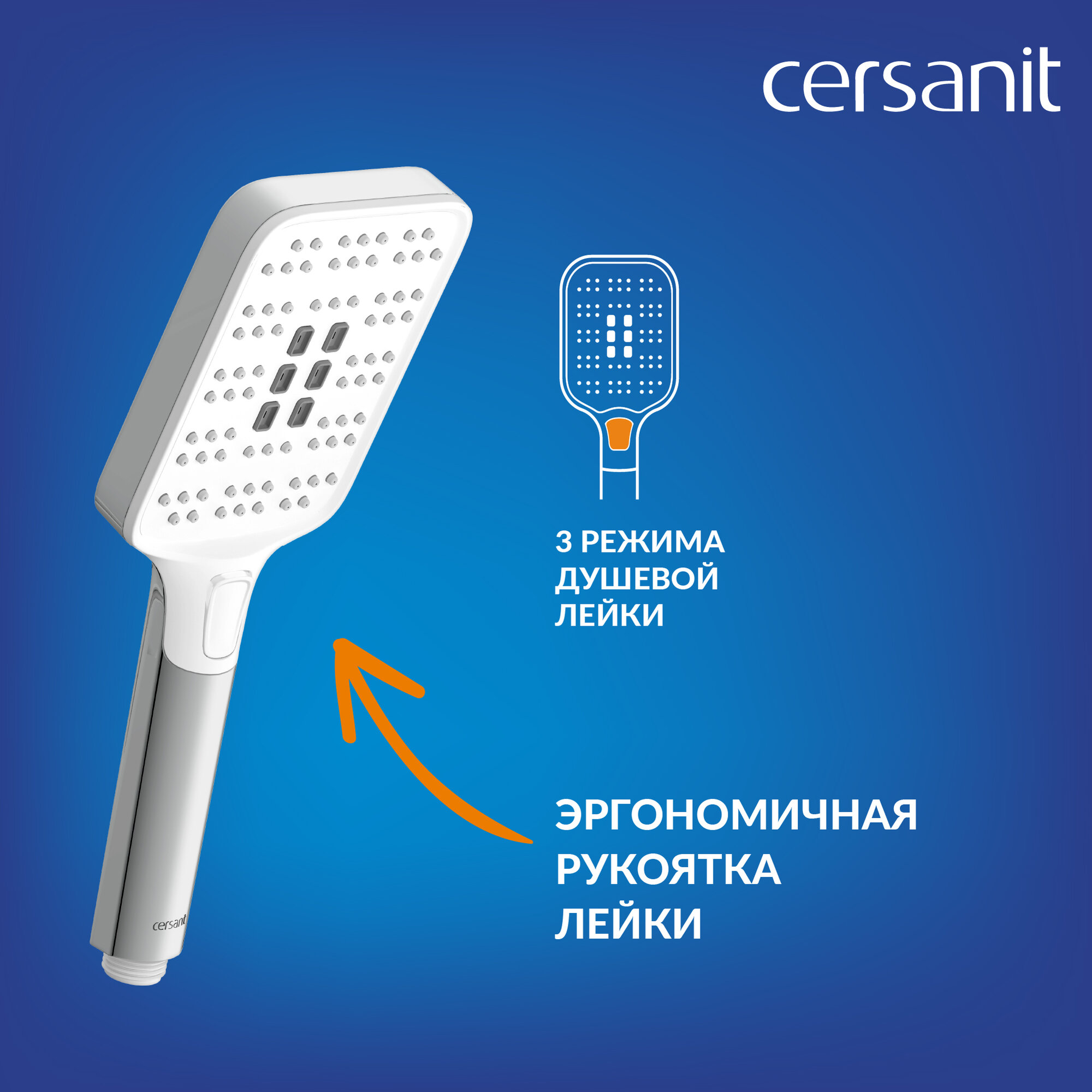 Душевой гарнитур с держателем лейки и шлангом Cersanit FERRO 3 режима 150 см 64085