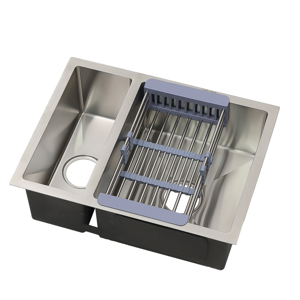 Melana Мойка из нержавеющей стали H57544 сатин MELANA ProfLine 3,0/200, с коландером и сифоном, две чаши, 57,5х44 см кухонная мойка в Курчатов