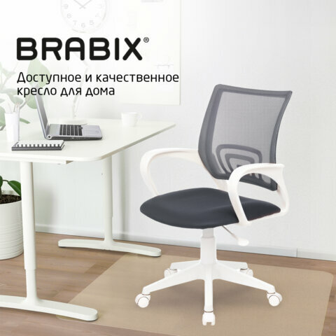 Кресло Brabix fly, mg-396w, с подлокотниками, пластик белый, сетка, темно-серое (MG-396W_532400)