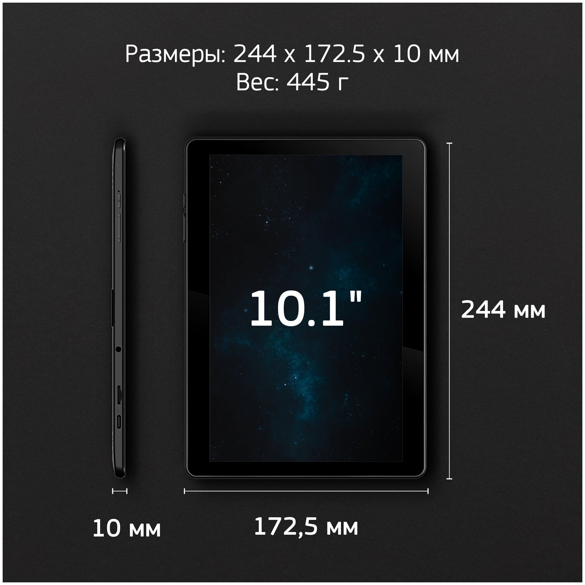 - 10.1 " / 1920x1200 пикс / 224 ppi / IPS