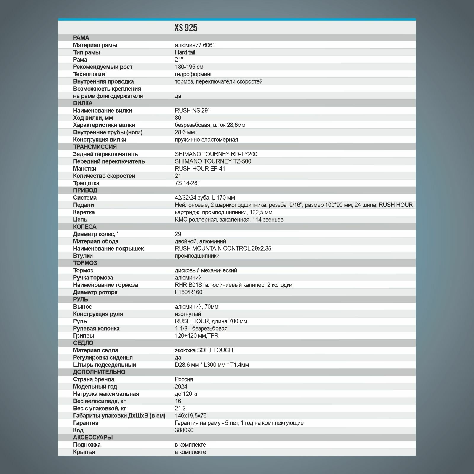 Велосипед горный 29" XS 925 DISC AL 21ск RUSH HOUR