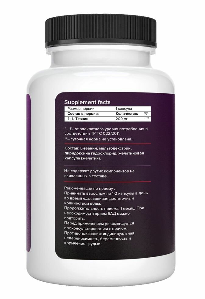 L-Theanine 200 mg / Теанин / Капсулы / 90 порций / 90 капсул
