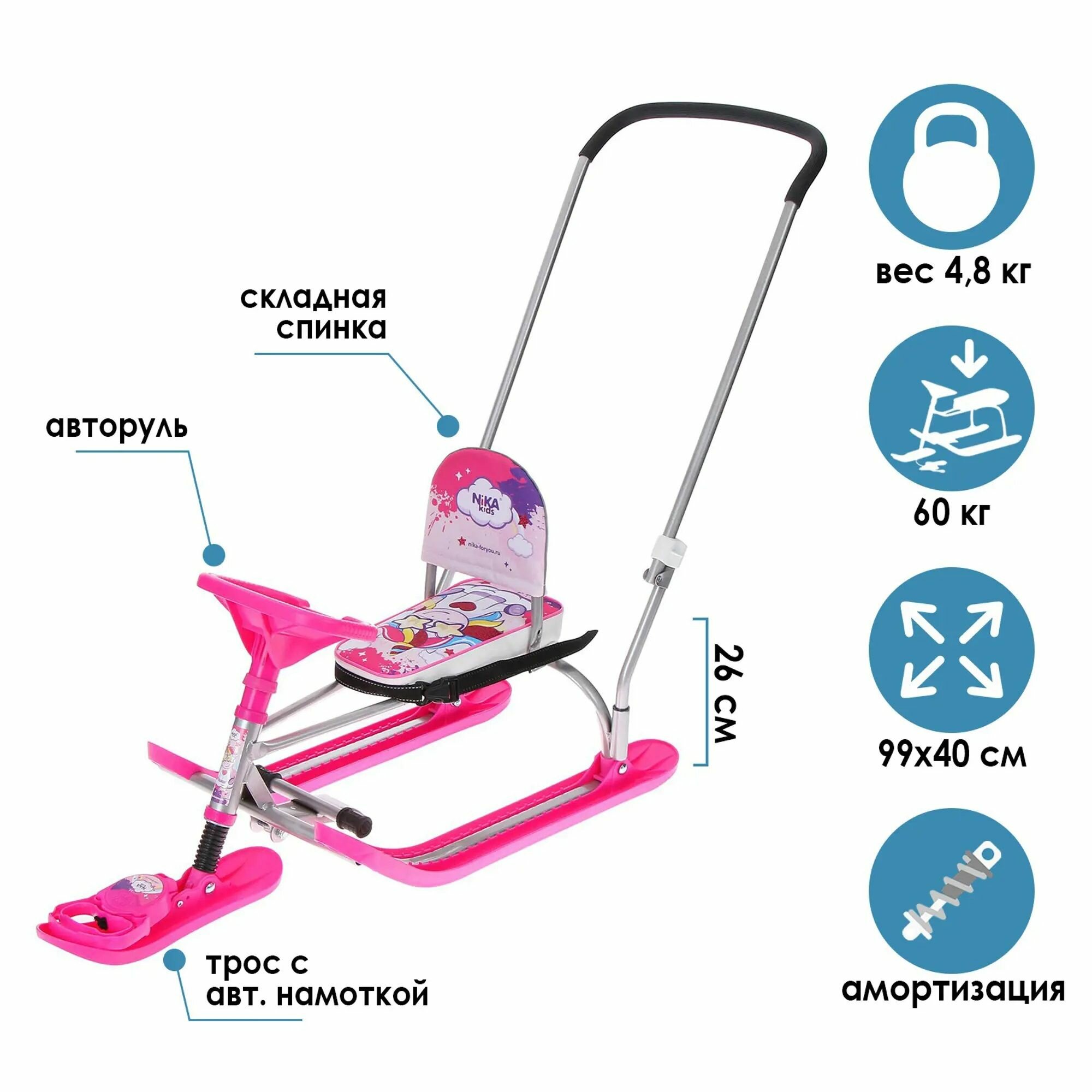 Stiga Снегокат Nika Kids TWINY 2 «Единорог», TW2-M/EP, с родительской ручкой, со спинкой и ремнём безопасности, цвет розовый, серый санки в Курчатов