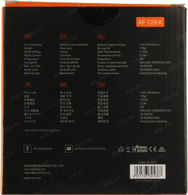 Вентилятор ID-COOLING AF-125-K, 120мм, Ret