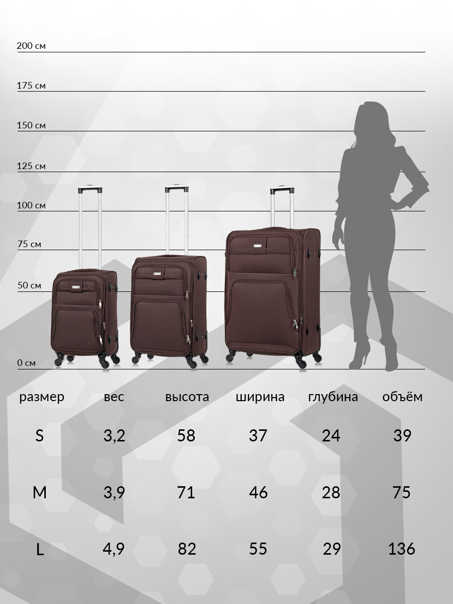Чемодан средний L'Case Barcelona (M) кофе, 70.5х45х30, арт:Ch0784