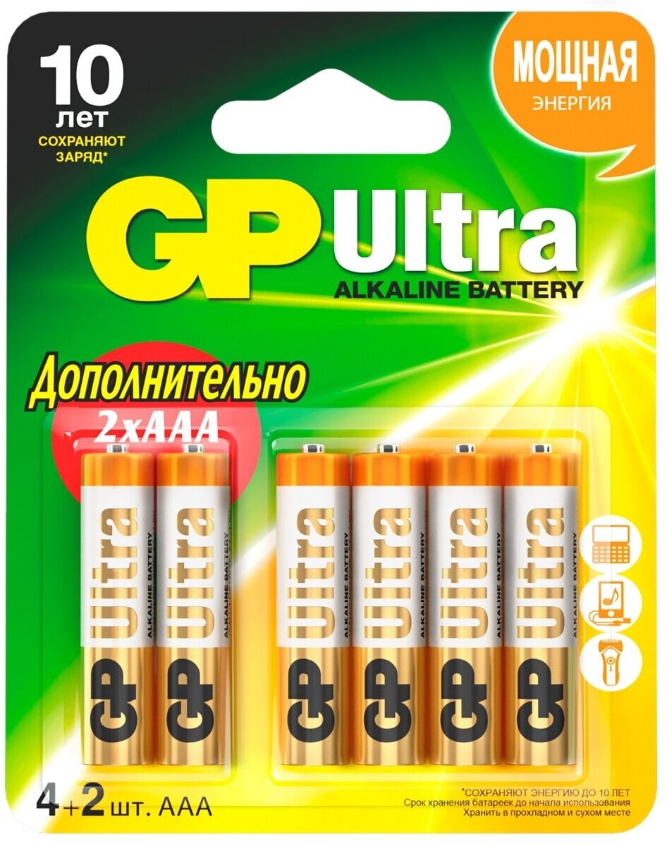 Алкалиновые батарейки GP Ultra Alkaline GP 24AU4/2-2CR6 Ultra 72/720 24А AАA - 4+2 шт. промо-блистер