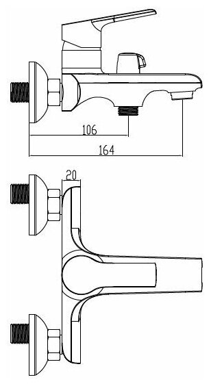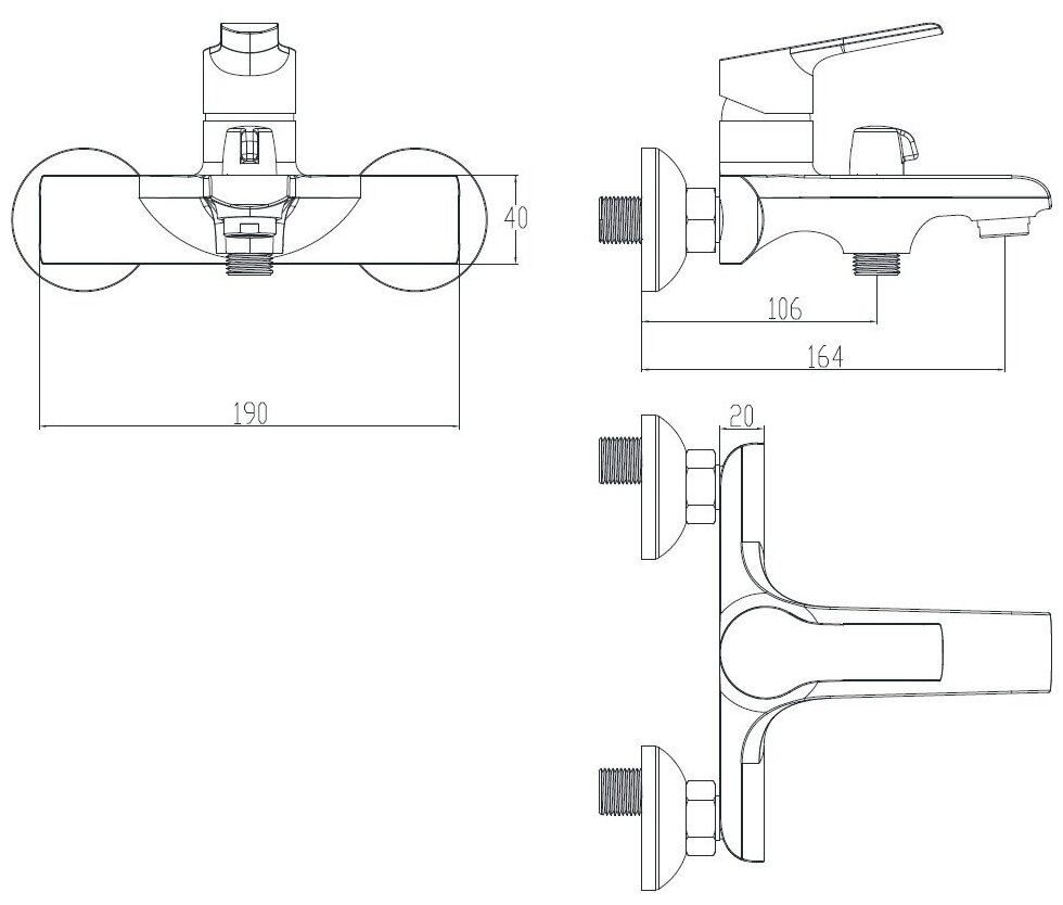 Смеситель для ванны и душа с коротким изливом Zenta Фиеста Z2403