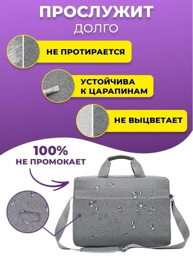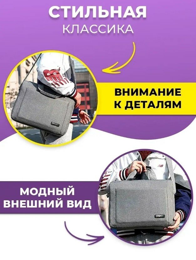 Сумка для ноутбука до 15,6 дюймов, чехол под ноутбук, макбук (Macbook), ультрабук, размер 40-28-7 см, серый