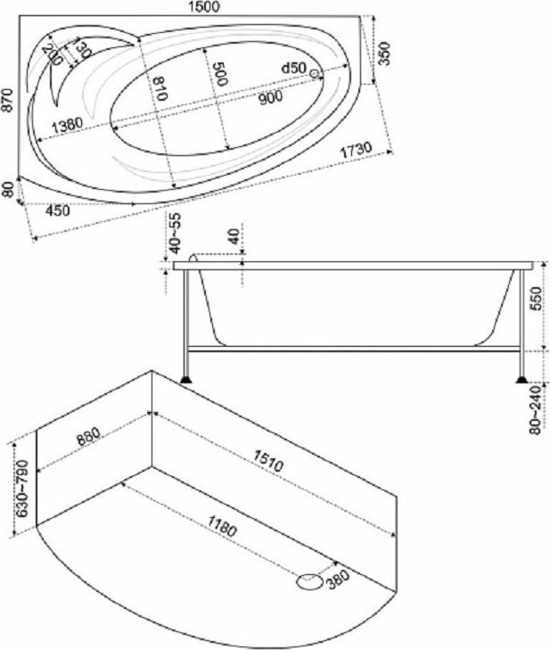 Акриловая ванна Bas Фэнтази 150x88 R В 00041 без гидромассажа