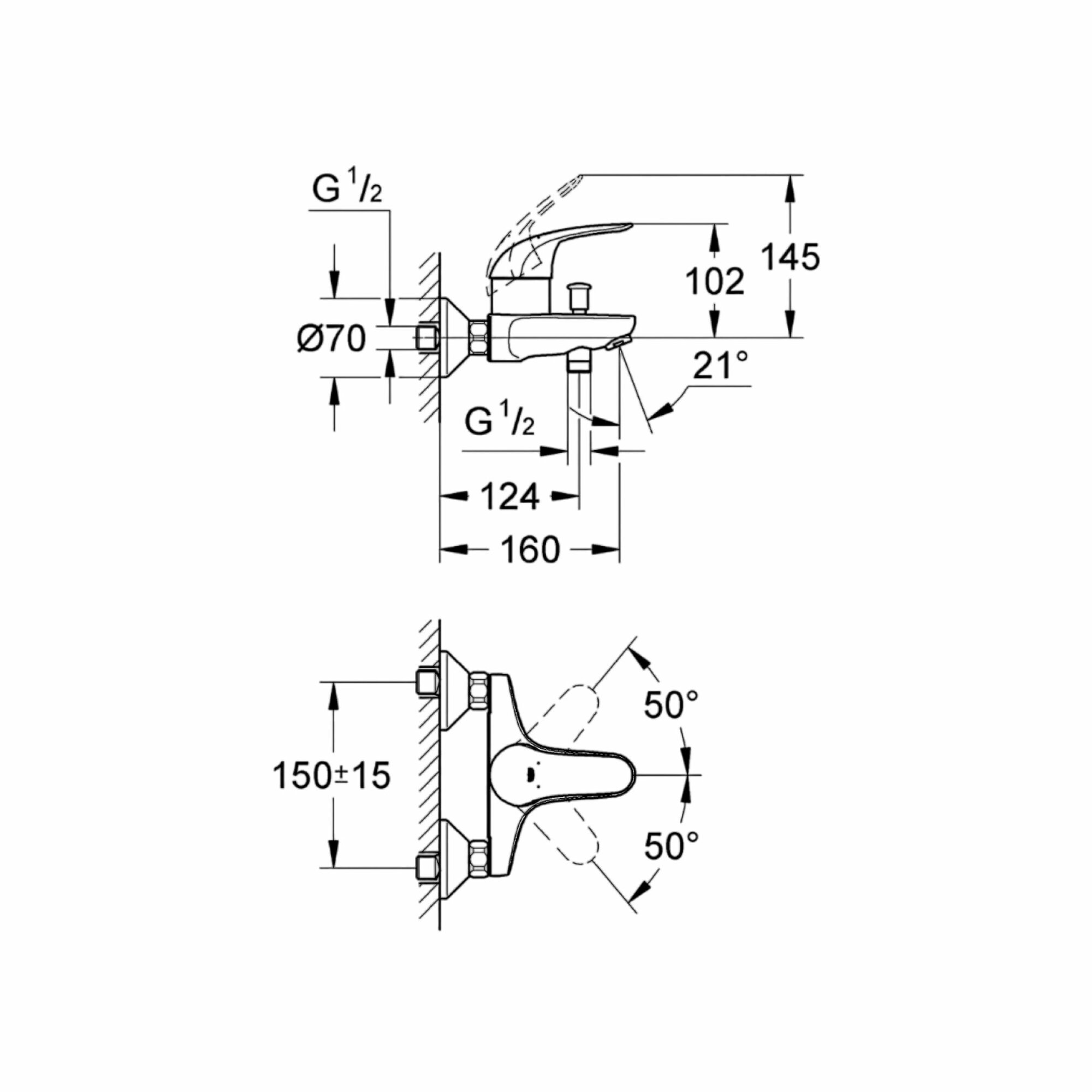 Однорычажный смеситель для ванны с душем Grohe Euroeco 32743000