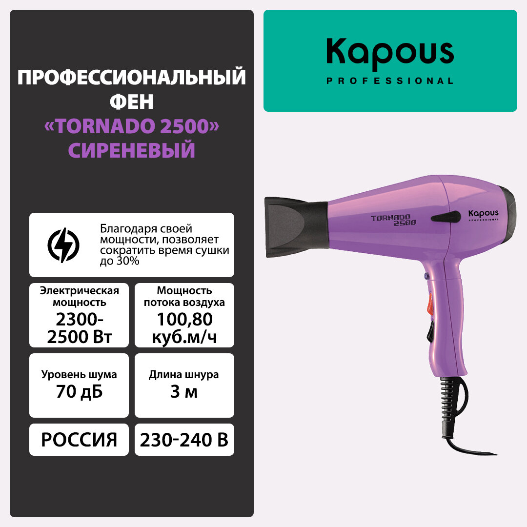 Профессиональный фен Kapous «Tornado 2500», сиреневый