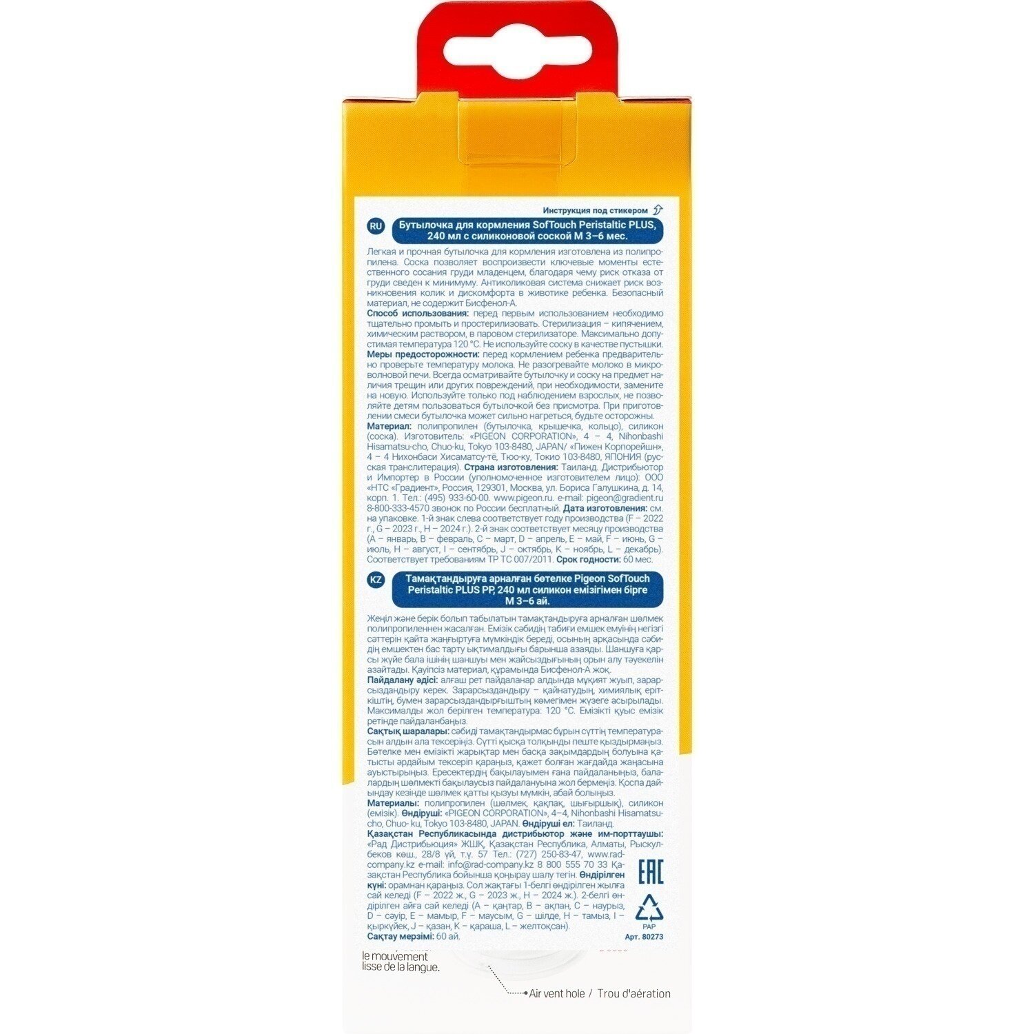 Бутылочка Pigeon (Пиджен) для кормления SofTouch Peristaltc PLUS 240 мл