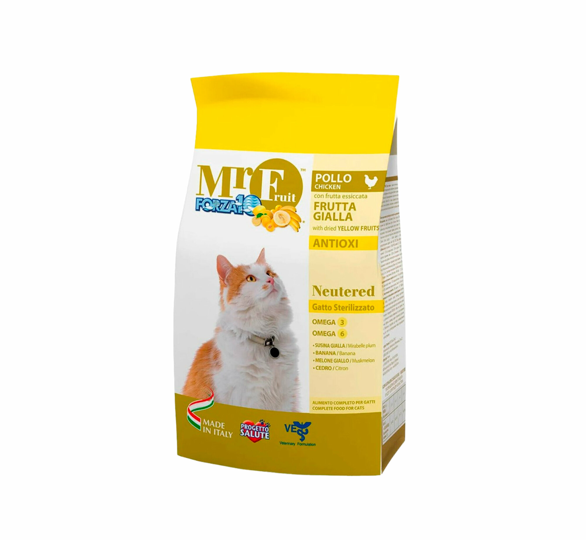 Сухой корм для стерилизованных кошек Forza10 Mr. Fruit, с курицей и экстрактами жёлтых фруктов 1.5 кг