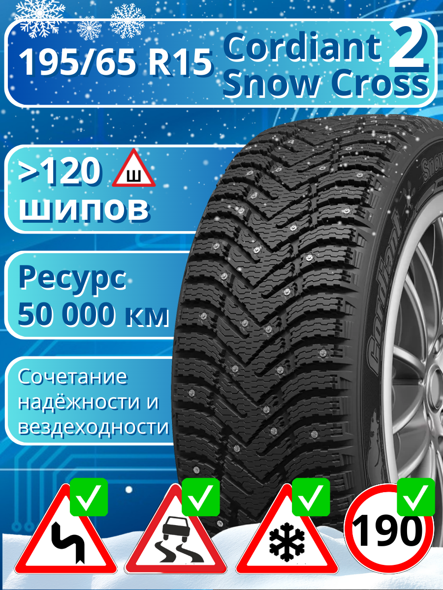 Cordiant Шины Cordiant Snow CROSS-2 195/65 R15 95T шип.-686193309 шины в Курчатов