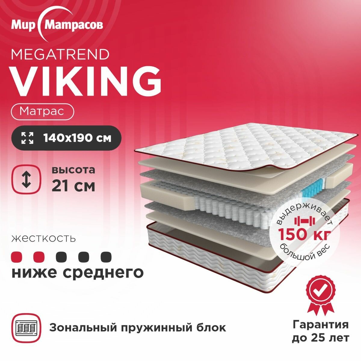 Askona Анатомический матрас, Ортопедический матрас MegaTrend Viking, Зональный блок 140x190 см матрас в Курчатов