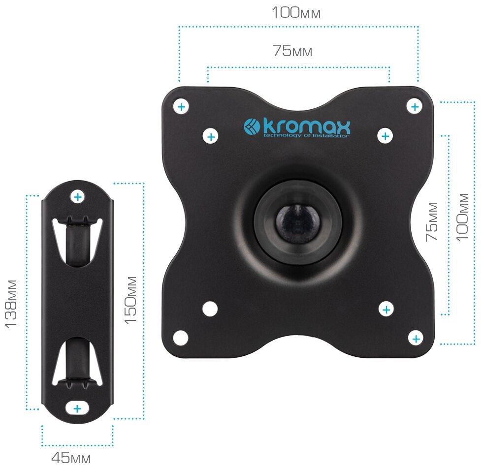 Кронштейн Kromax DIX-15 до 30кг Vesa до 100x100 black