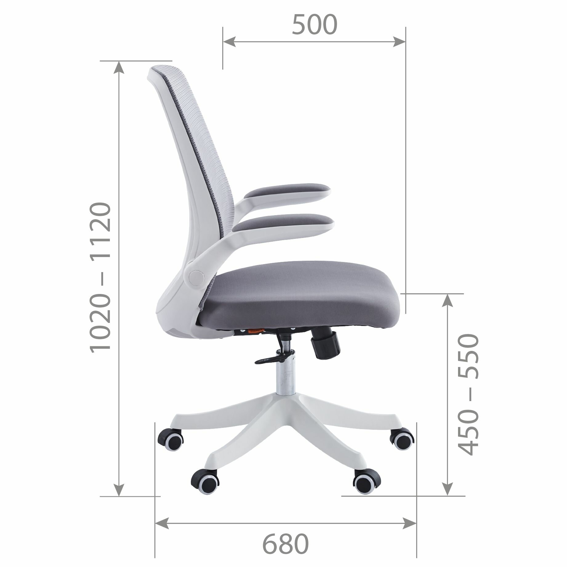 Кресло Chairman CH 565, откидные подлокотники, синхромеханизм, пластик белый, сетка/ткань, серое, 7146049