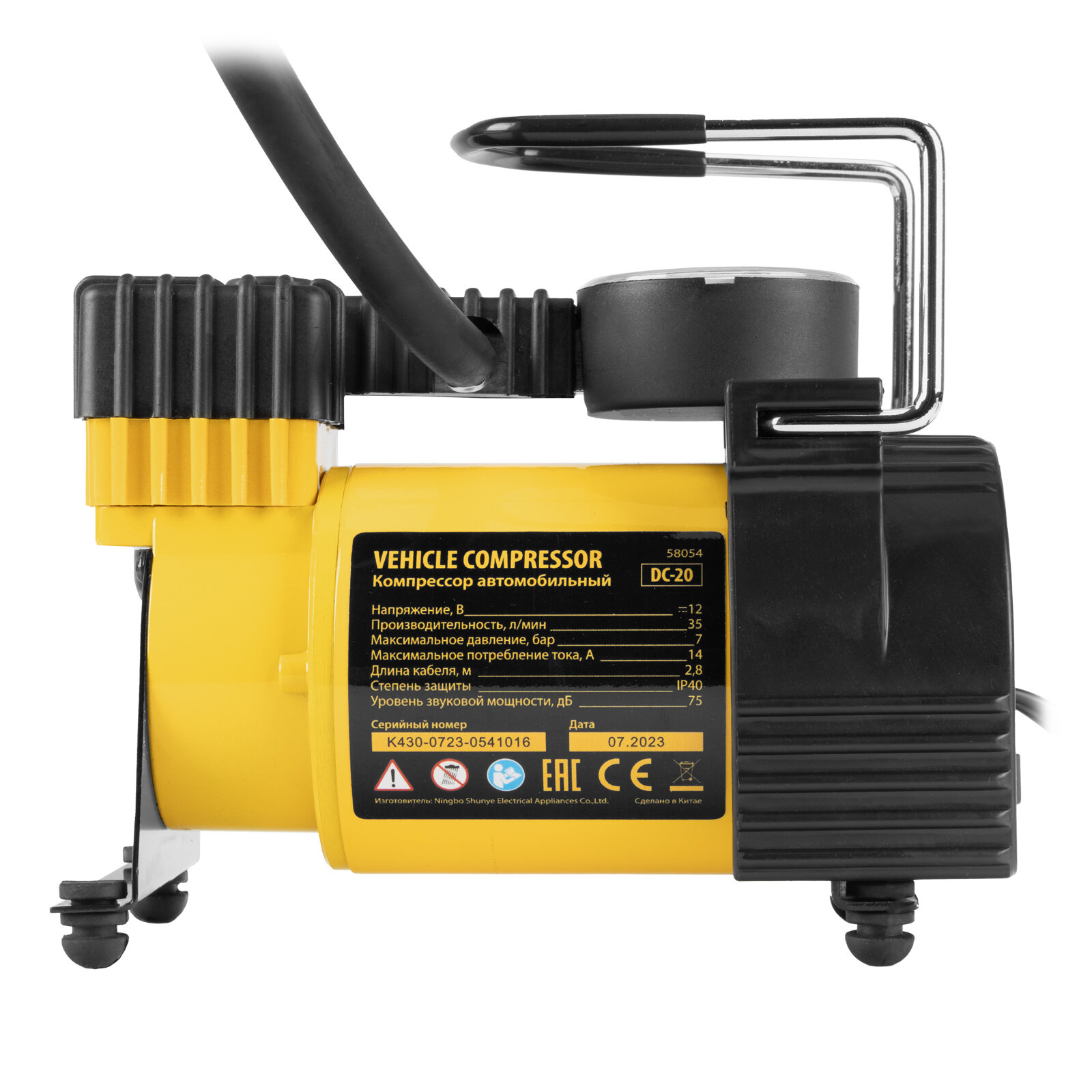 Компрессор автомобильный DС-20, 12 В, 7 атм., 35 лмин, DENZEL 58054 (1 шт.)
