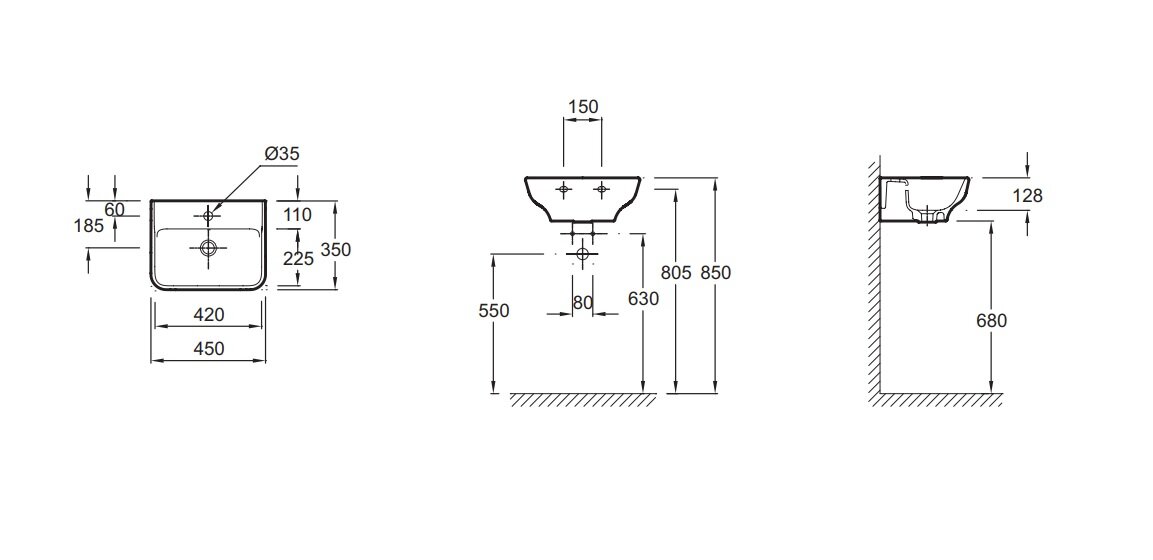 Раковина подвесная Jacob Delafon STRUKTURA EGH112-00 45