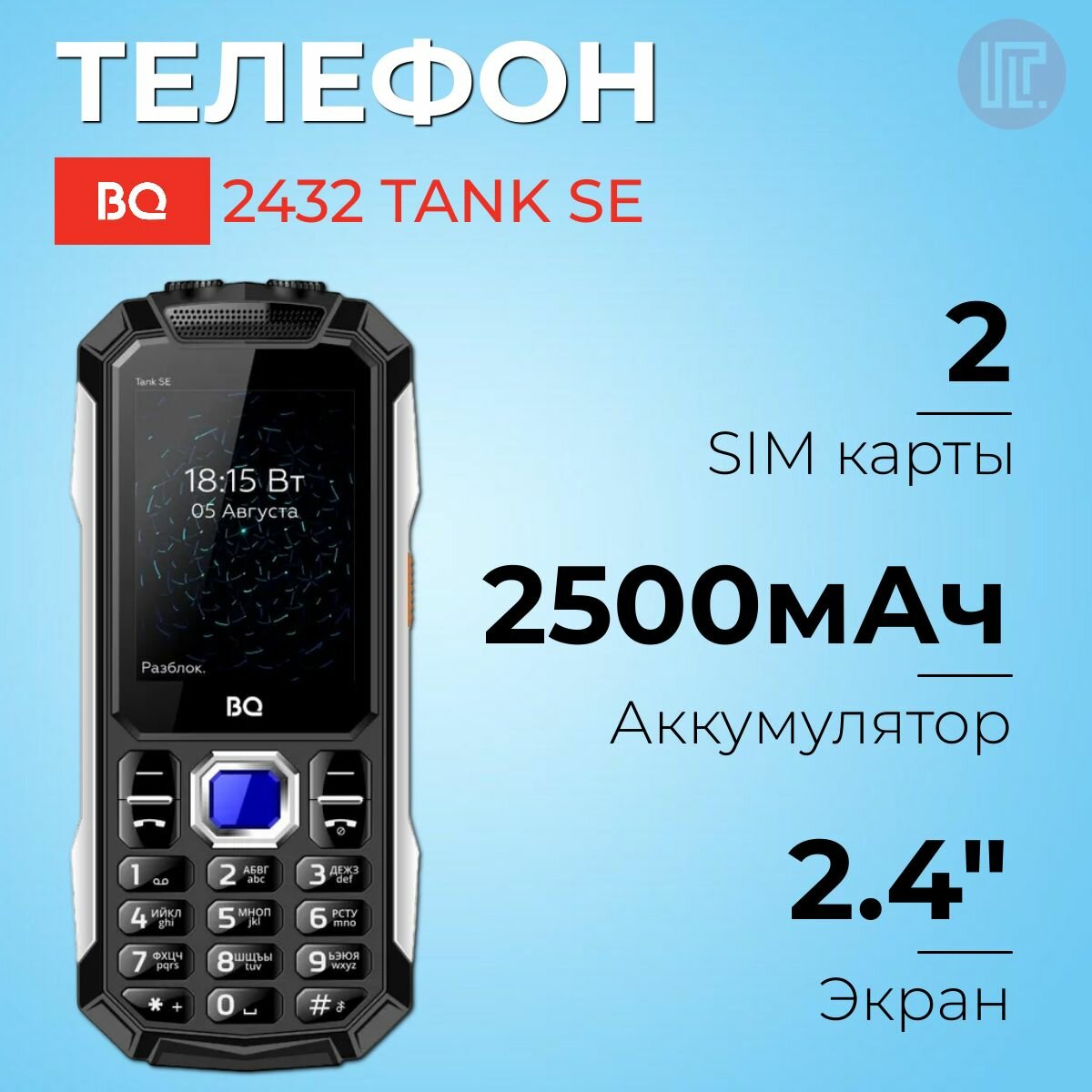 Mann Кнопочный мобильный телефон с 2-мя СИМ-картами BQ 2432 Tank SE Black / Без камеры, армейский мобильные телефоны в Курчатов