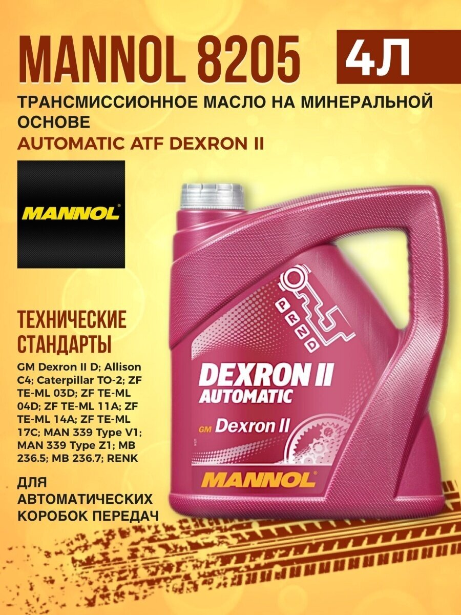 Масло Mannol транс. ATF Dextron-II Automatic 8205 (4 л) GM Dexron II-D, MB 236.5/236.7; RENK; MAN 339 V1/Z1