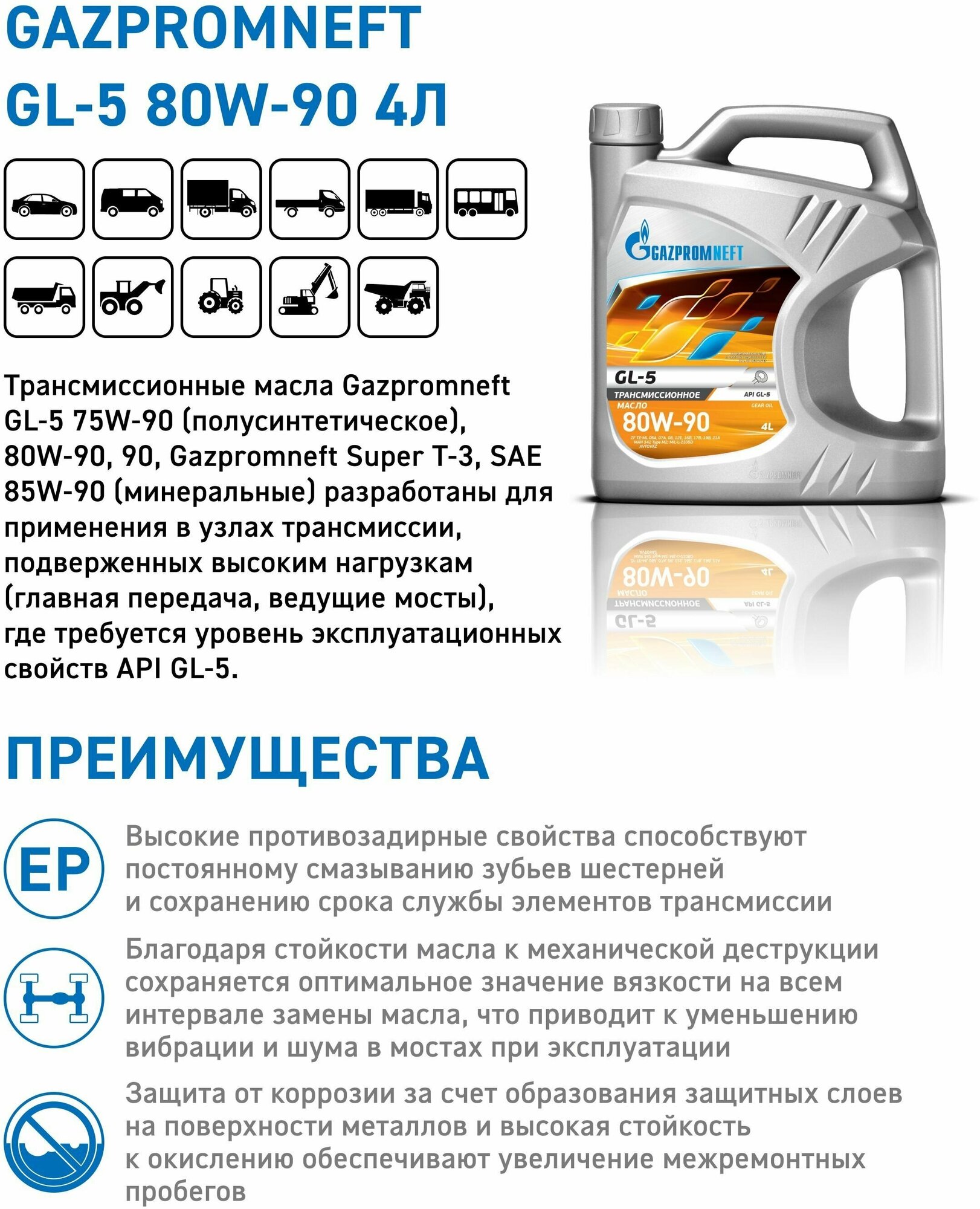 Масло трансмиссионное gazpromneft gl-5 80w90 4 л 2389901362