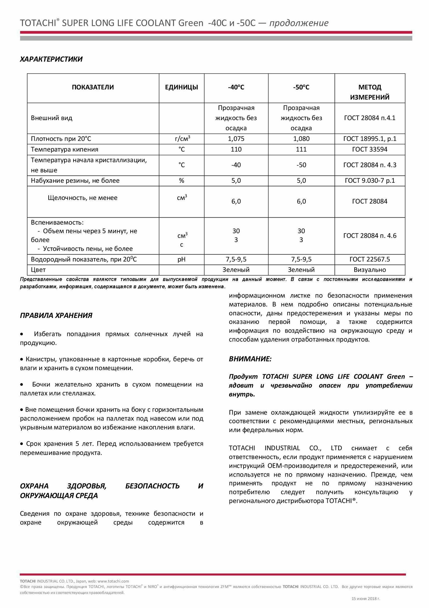 TOTACHI 41604 Жидкость охлаждающая низкозамерзающая SUPER LONG LIFE COOLANT Green -40C 4л
