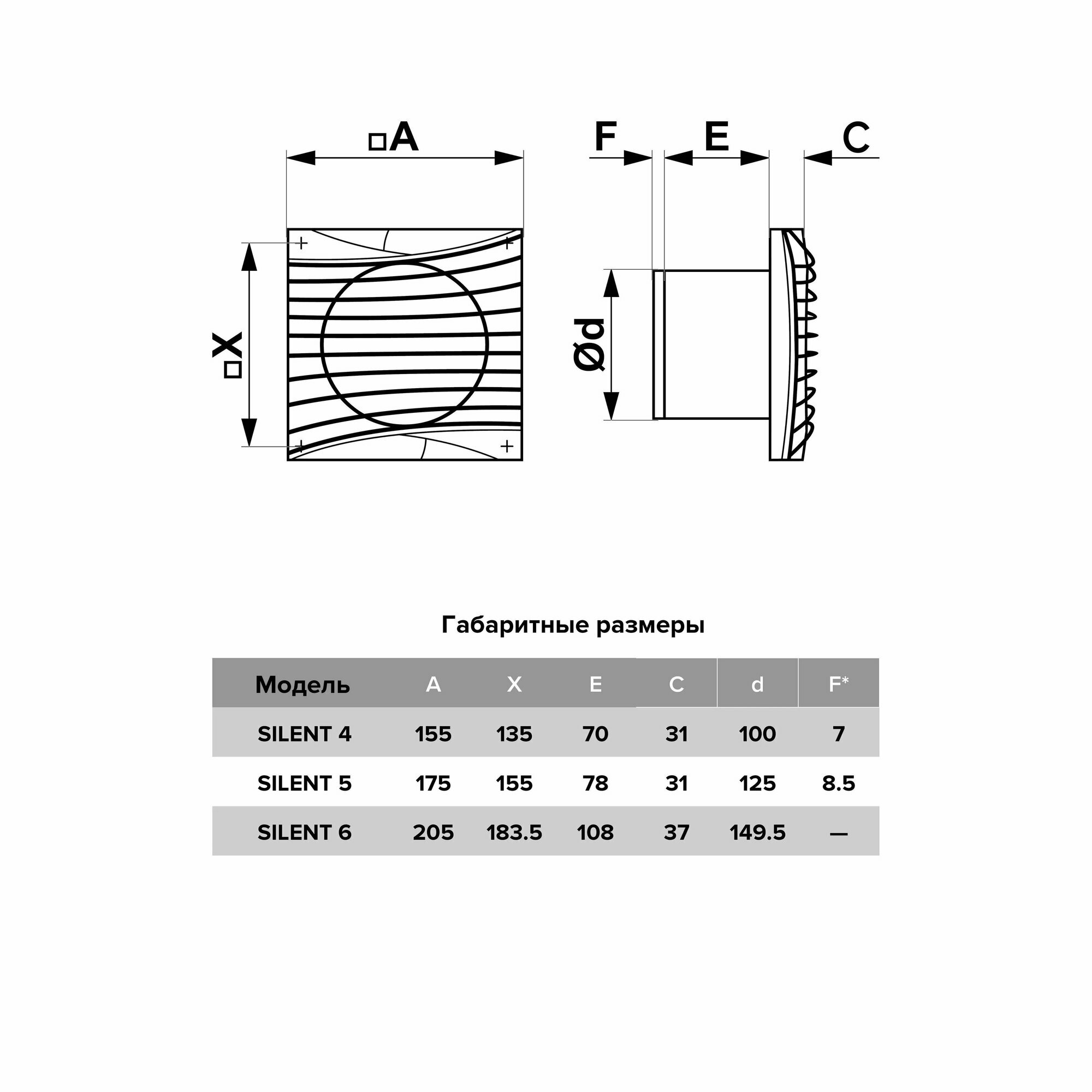 Вытяжной вентилятор Diciti SILENT 4C, 155х155 мм, D100 мм, с обр. клапаном, в ванную, белый