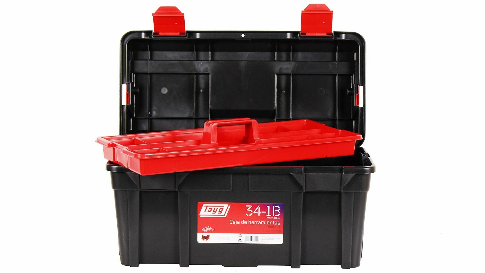 Ящик для инструмента TAYG №34-1В с лотком и ручкой-фиксатором, черный, 580х285х290 мм