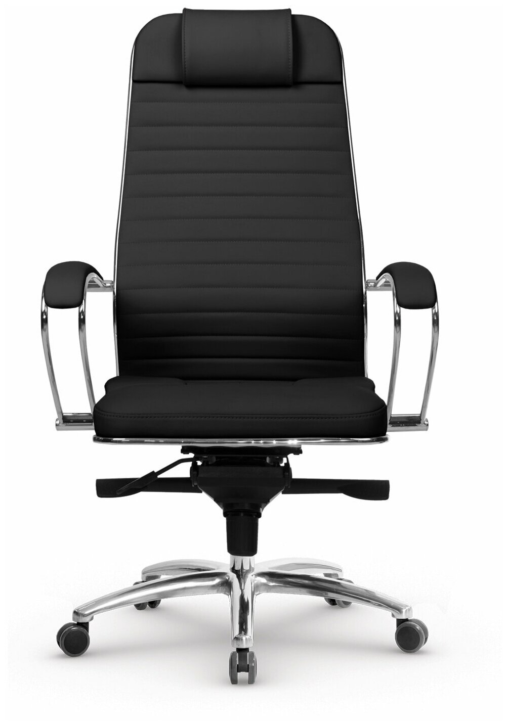 Офисное кресло Метта Samurai KL-1.04 черный (ортопедическое компьютерное черное игровое кресло для школьников, для взрослых, метта самурай для офиса, эргономичное на колесиках, с подлокотниками), кожа