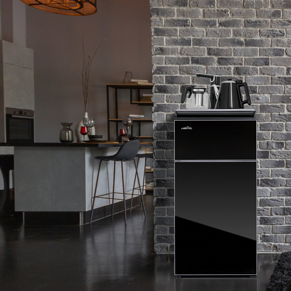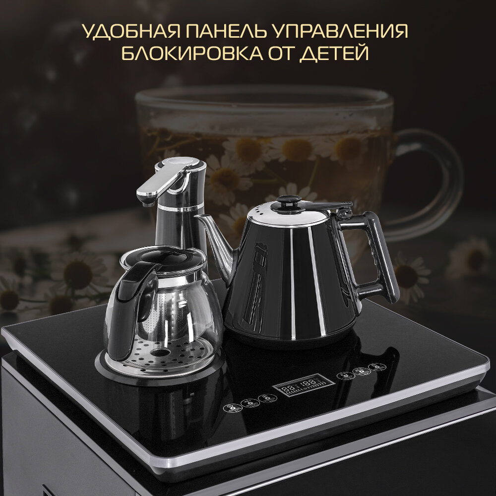 Кулер для воды HIBERG F91 FGB напольный, нижняя загрузка, электрочайник, черное стекло