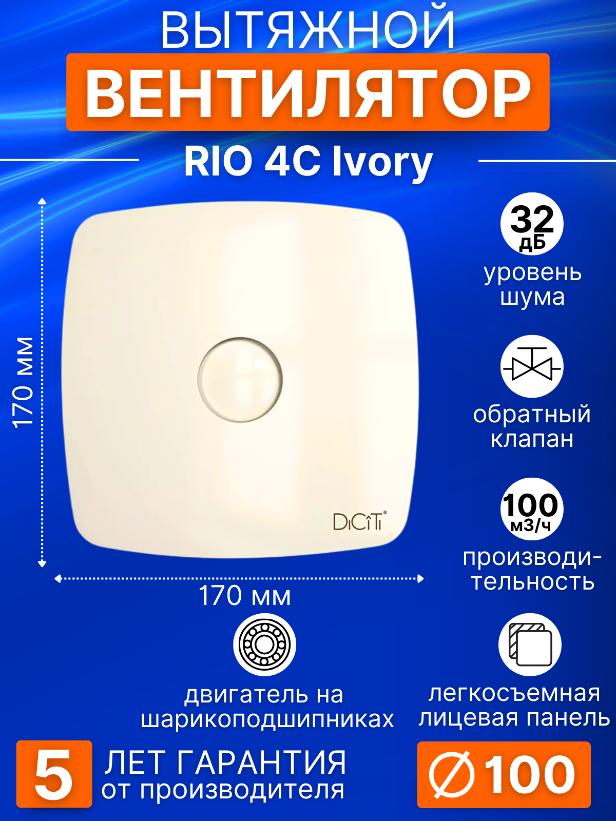 Вентилятор осевой вытяжной с обратным клапаном DICITI RIO 4C Ivory Слоновая кость D100