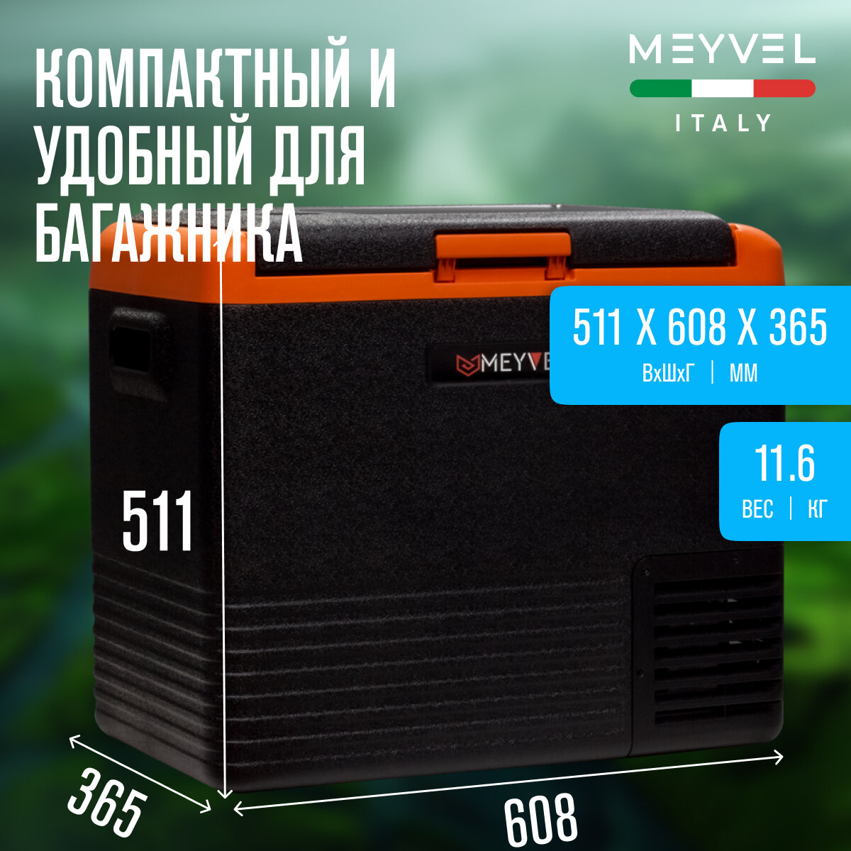 Компрессорный автохолодильник Meyvel AF-K50 (50 л) объем морозильной камеры, черно-оранжевый