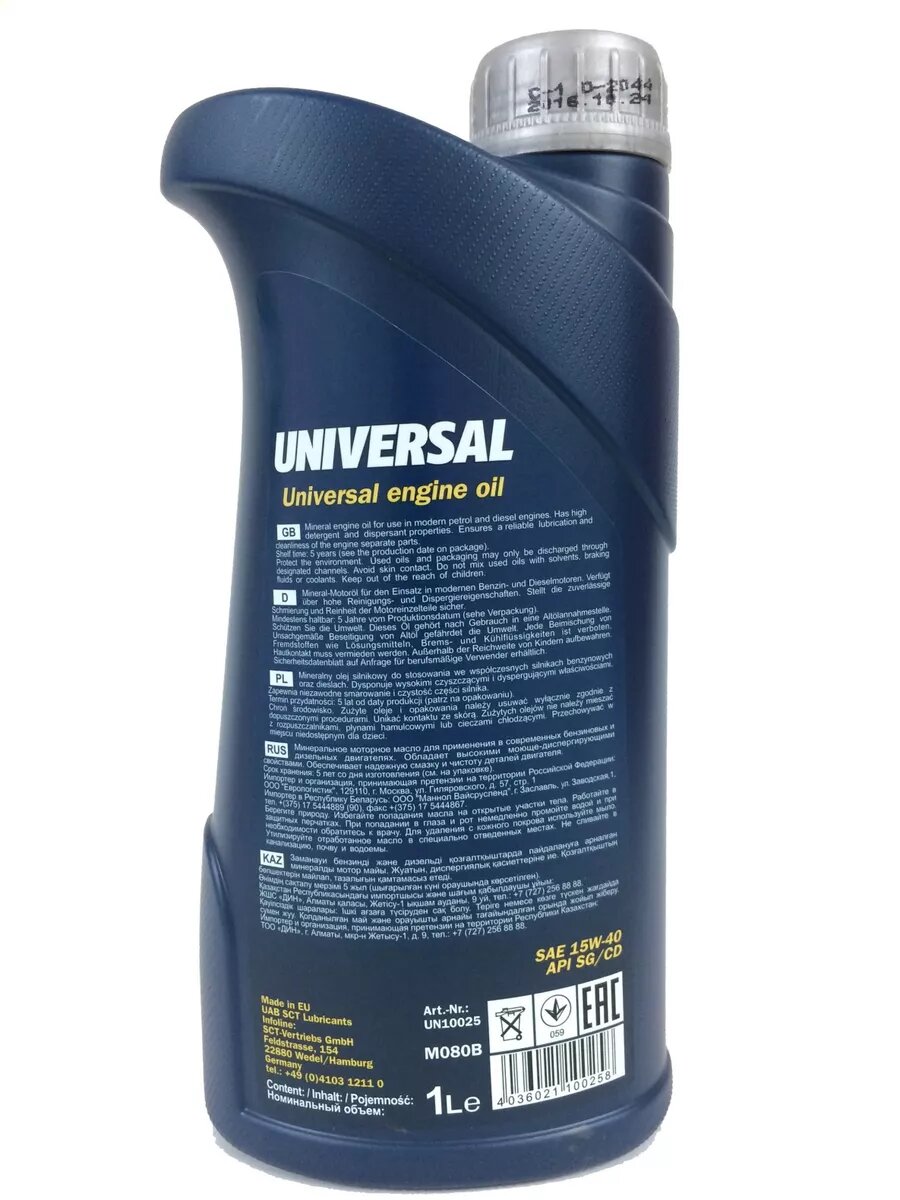 Масло Моторное Mannol Universal 15w40 Sg/Cd Минеральное 1л. MANNOL арт. MNU15401