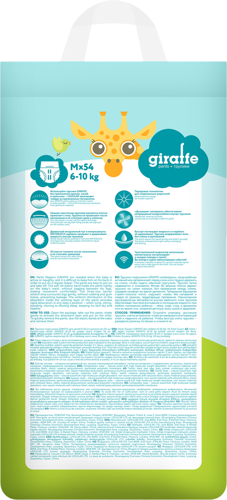 Lovular Россия LOVULAR GIRAFFE, Трусики-подгузники, M 6-10 кг, 54 шт/уп подгузники в Курчатов