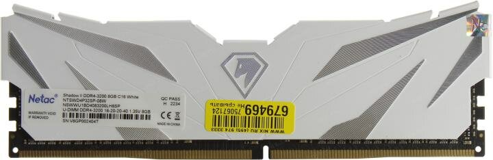 Оперативная память NETAC Shadow II NTSWD4P32SP-08W DDR4 - 8ГБ 3200МГц, DIMM, White, Ret